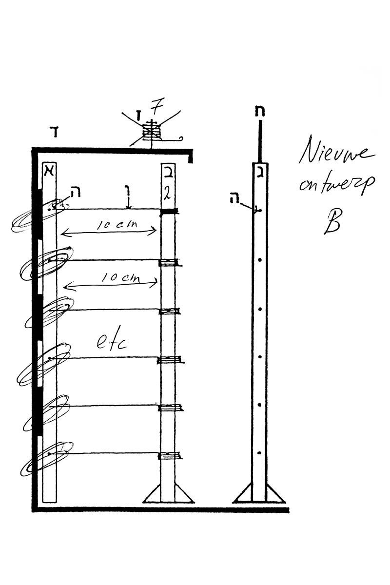 Ik ging op zoek naar manieren om die eroev te repareren. Ik was jong en misschien overenthousiast, maar ik vind ook: je bent een goede rabbijn als je out of the box, maar binnen de Joodse wet oplossingen kunt bedenken voor de problemen die er zijn. En ik vónd een oplossing: ik bedacht een staand kastje, waarin de kettingen door een speciale constructie niet hangen, maar strak om een as gewikkeld zaten. Dat moest het probleem kunnen oplossen, leek me. Maar opperrabbijn Just wilde er niet van weten.