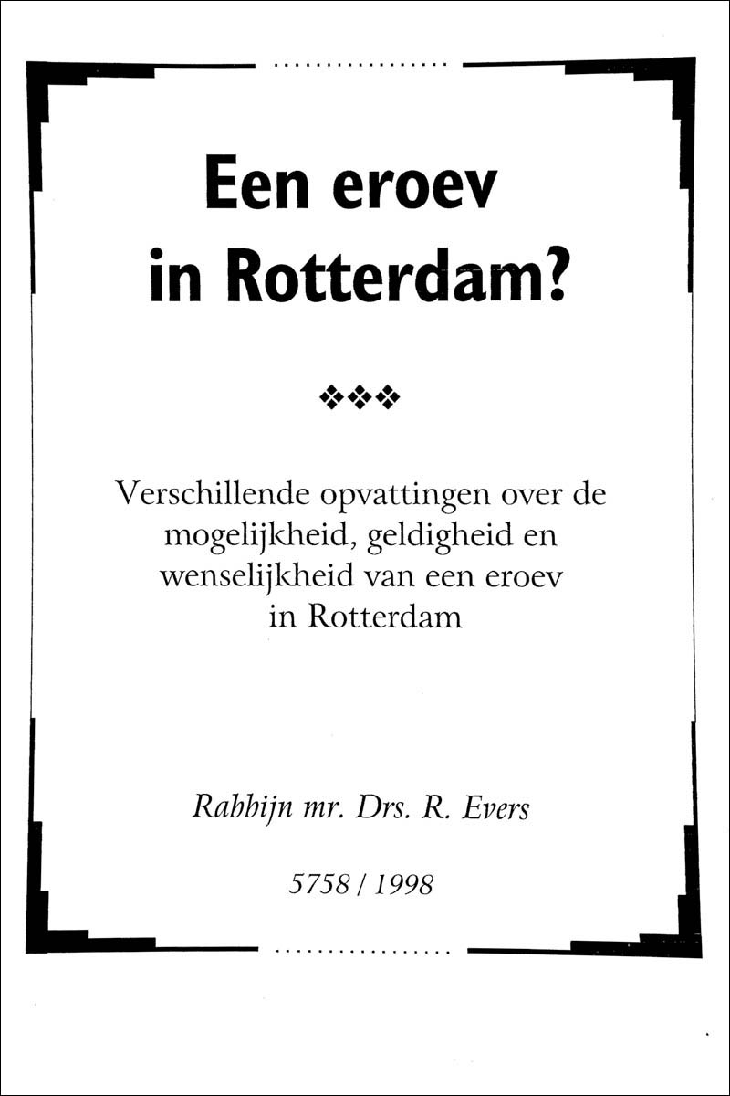 In de jaren dat ik rabbijn was in Rotterdam had ik al eens geprobeerd in die stad een eroev van de grond te krijgen, maar door gebrek aan enthousiasme is dat niet gelukt.